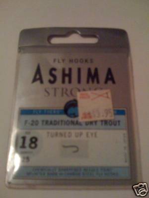 ASHIMA DRY FLY HOOKS size 18. F-20 traditonal dry fly hook turned up eye. Check out my other items!