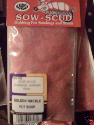 Wapsi Dubbing Sow-Scud color (SHRIMP PINK). For lifelike sow bugs and scuds use Sow-Scud Dubbing. This sparkling blend of opossum, super bright and antron is very easy to dub.