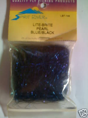 Spirit River Lite-Brite Dubbing color PEARL BLACK & BLUE. Lite-Bright is very fine flat Mylar flash chopped and blended with fine filaments of clear nylon to hold it together and provide loft. Normally it is distributed inside a dubbing loop and applied like a long knap chenille, then picked out to give it a hairy appearance. Lite-Brite dubbing reflects light in all directions and is nearly a supple as marabou or fin fur. Check out my other items!