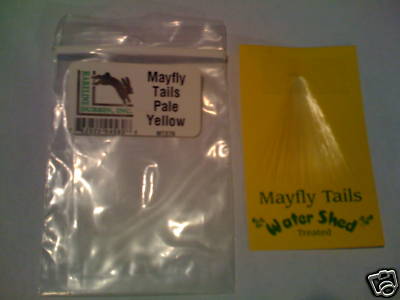 Hareline Microfibetts Mayfly Tails color "PALE YELLOW". The nylon fibers are used for tailing on dry flies. Treated with Watershed for extra floatability.