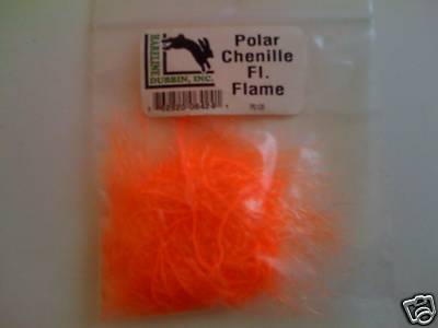 HARELINE POLAR CHENILLE color FL. FLAME. is a great fly tying yarn with long, buggy translucent fibers that add life to any freshwater or saltwater fly pattern. Very easy to work with, Polar Chenille gives you a dubbed look without the labor!