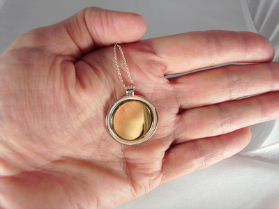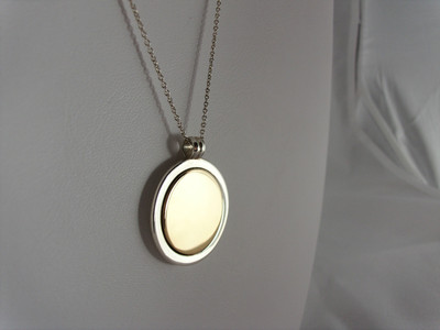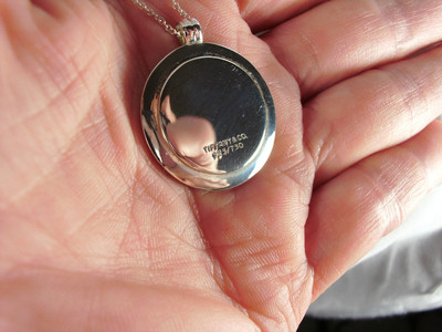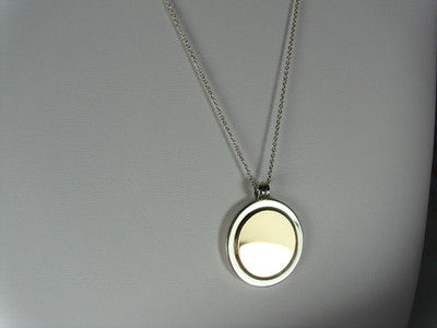 TIFFANY 18K Solid Gold Round Medallion Sterling Silver Trim Pendant Necklace