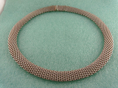Wide Mesh Choker Necklace Solid .925 Sterling Silver