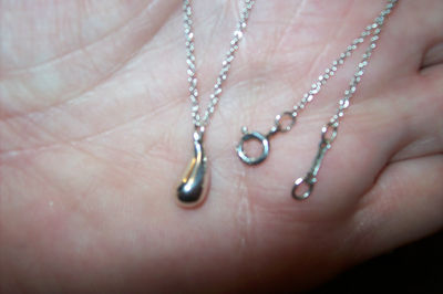 .925 High Polish Sterling Silver 16" Length TIFFANY chain 1/2" Teardrop Pendant