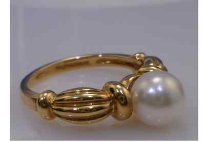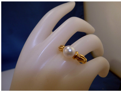 TIFFANY & Co. Pearl Ring Solid 18K Yellow Gold w/ Box & ALL, Sz 7.5