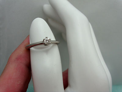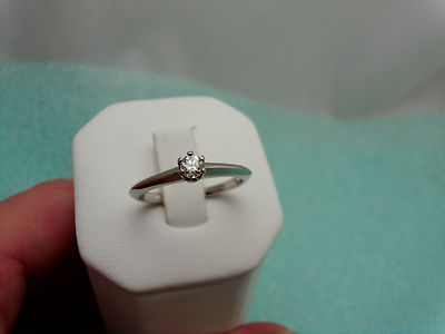 TIFFANY & Co Solitaire Diamond Platinum Band Engagement Wedding Ring Sizable 5.5