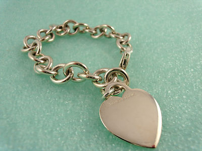 TIFFANY & Co. Heart Tag Charm Cable Link Bracelet Sterling Silver Polished!! Box