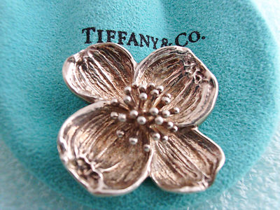 TIFFANY & Co. Dogwood Flower Blossom Brooch Pin Sterling Silver Rare Vintage