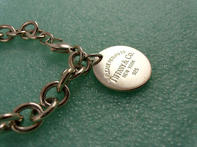 Return to Tiffany Round Tag Cable Link Charm Bracelet Strlg Silver-Prof Polished