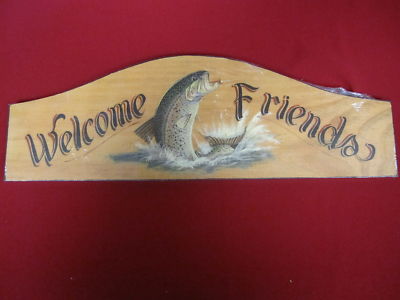 Wood Hanging Plaque "Welcome Friends" with a Fish