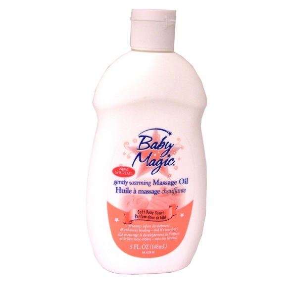 "Baby Magic Gently Warming Massage Oil. Soft baby scent. Promotes infant development. A gentle, easy to use, no-tears formula to develop bonding between you and your baby. Baby Massage helps relieve stress and improve blood circulation as well as normalizing muscle tone. 5 oz bottle." Case Pack 6