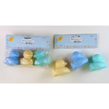 Bath toys. 3 assorted rubber duckies per package. Assorted colors in each package. Case Pack 144