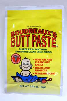 "Boudreaux's Butt Paste Diaper Rash Ointment packet. 0.33 oz packet." Case Pack 50