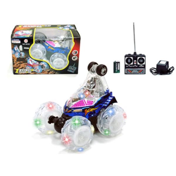 The Invincible Tornado Stunt Vehicle is one of the greatest remote control cars in the market. Now it is musical too. It is the advanced new version of the Turbo Twister stunt car. It comes complete with the following accessories and amazing features: REMOTE CONTROL TURBO 360 DEGREE FRONT AXLE SPINS SUPER WHEELIES SPINNING ACTION BLAZING SPEED FOUR RECHARGEABLE BATTERIES IN THE CAR 9V BATTERY INCLUDED FOR THE REMOTE CONTROL. Case Pack 12