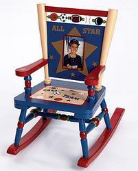 Spinning balls (soccer, basketball, football and baseball) along top of seat backCheer-ful "Go Team" seat designAll Star 4" x 6" photo frame to honor your future MVP!Special understamp beneath the seat that the customer can personalize with the childs name, the name of the gift-giver and the special occasion when the chair is receivedPhoto greeting card included so child can say "Thank You" in a memorable way
