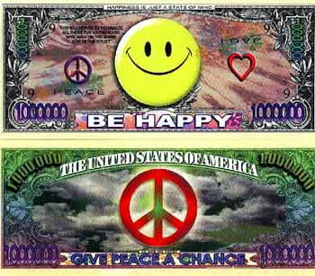 Wholesale Be Happy Smiley Face Novelty Bills. 4 Color Printing On Front And Back. Same Size As Actual Currency. Great For Resale Or Use In Promotions. Case Pack 100