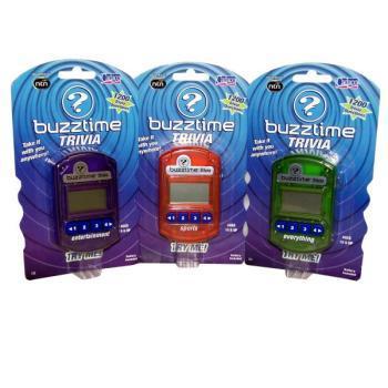 "Buzztime Handheld Trivia Challenge. Test your knowledge at sports, entertainment, and everything with Buzztime Trivia! There are 1200 trivia questions in each hand held device! It is the perfect size for travel. America's favorite restaurant game has never been so much fun! Requires 1 ""CR2032"" battery (included). For ages 10 and up. 2 of each category per case. Case pack: 6." Case Pack 6