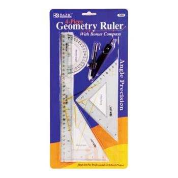 BAZIC Geometry Ruler Combination Sets w/ Compass ( Case Pack 144