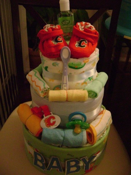 1 pacifer, 1 pacifier clip, 1 pair of booties, 1 spoon, 3 bibs, 6 face clothes, 1 hand sanitizer, 2 recieving blankets.