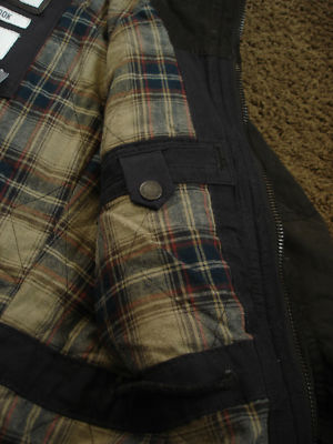 button flap pockets. 2 chest pockets with zip closure. 1 button tab cuff. Heavy