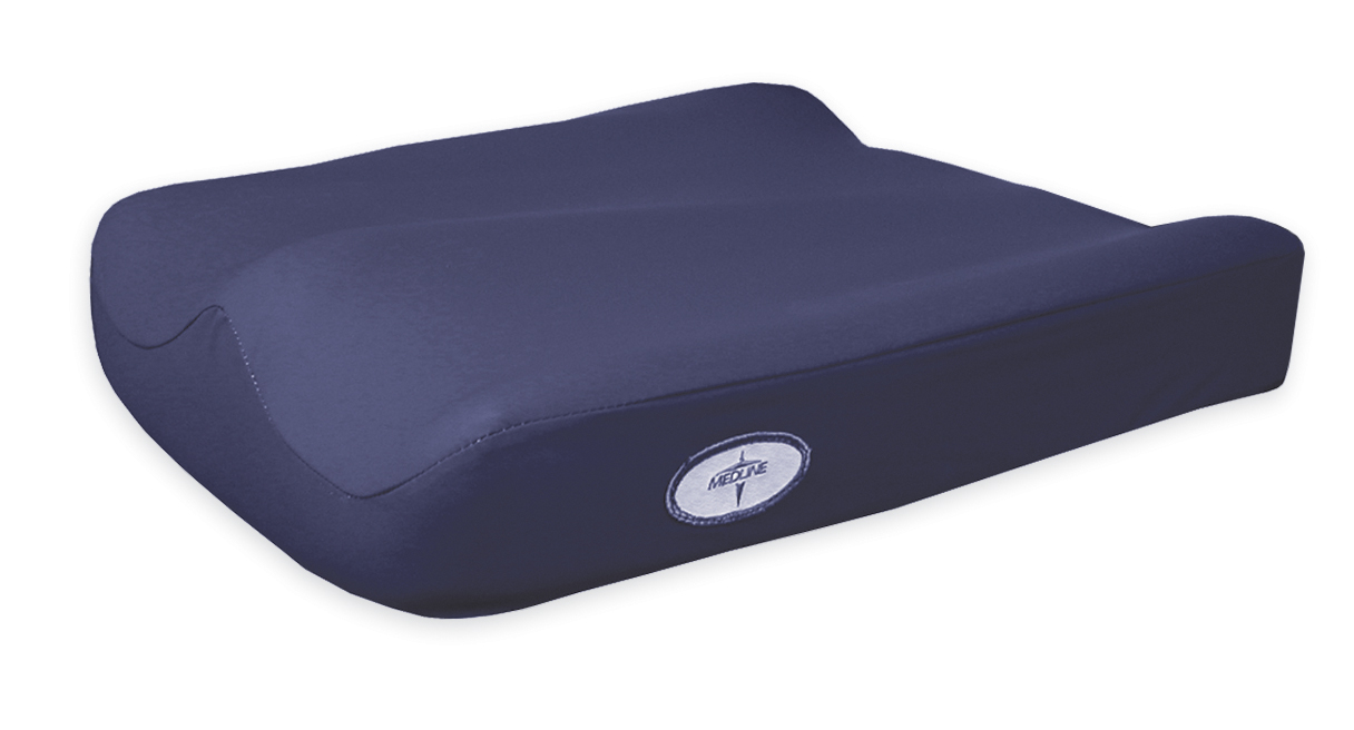 Medline Contour Plus: The contoured abductors and adductors position the legs and hips in an anatomically correct position. The high resiliency foam cushion features a segmented gel insert and waterfall front that help to redistribute weight and relieve pressure. The incontinent proof polyX cover has four way stretch for better performance and is easy to clean. 18 inchesx16 inches. 1 EA as 1 EA / EA.