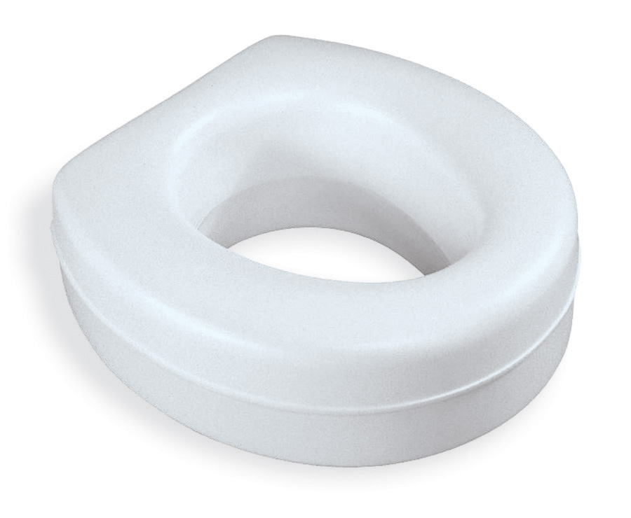 Contoured Plastic Raised Toilet Seat: Constructed of heavy-duty white polyethylene, it raises seat level by 4 1/2 inches. Seat width is 15 inches; 300-lb. weight capacity. Limited lifetime warranty on frame. Six month warranty on handles, incheswearable inches parts, grips, screws. 1 CS as 3 EA / CS, 1 CS / CS, 1 CS / CT.