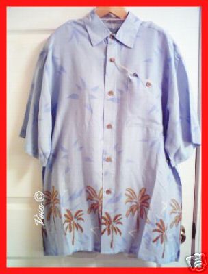 Welcome and take a look at this Men's Hawaiian Shirt in baby blue color with palm trees, 100 % Rayon for casual wear. Size Medium. Please visit my for more selections. Feel free to email if you have other questions. Hope you enjoyed our selections. Thank you.