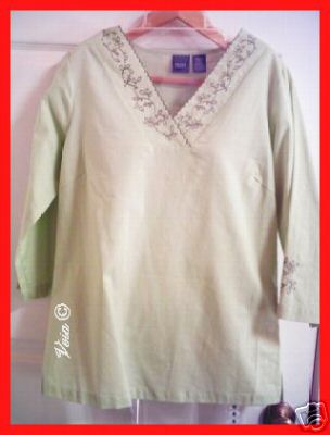Ladies Wear in apple green color , 100 % Cotton for formal or casual wear. Size Small. Very comfortable. Dimensions - lenght 26 inches from neck to bottom, bust 40 inch, armhole 18 inch. Please visit my for more selections. Feel free to email if you have other questions. Hope you enjoyed our selections. Thank you.