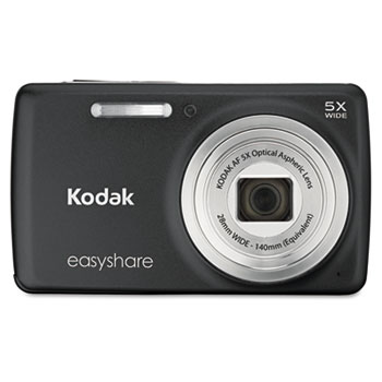 Super-slim camera is only 8/10" thick, so it stows easily in a purse or pocket. Features a 28mm wide-angle lens with 5x optical zoom to 140mm for great group shots. EasyShare features allow you to e-mail or upload your photos to popular sharing sites with the touch of a button when connected to your computer. High-definition 720p video is also just a button away, so you can capture those spontaneous moments on the fly. 300MB internal memory; SD/HDSD memory card recommended (sold separately.) Film/Camera Type: Digital; Image Sensor (megapixel): 14.0; Focus/Zoom: 5x Digital; 5x Optical; Exposures: N/A.