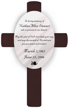 Remember your loved ones and God's love with this personalized memorial cross. Cross is personalized with name and dates.