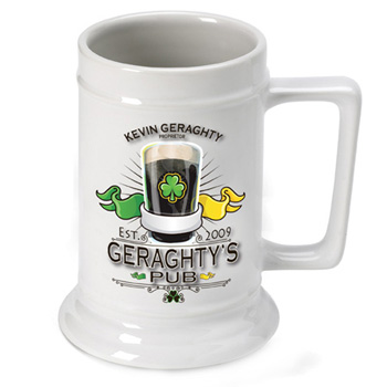 Whether they favor a lager, ale, malt or light beer, they'll toast you whenever they pour themselves a cold one into this personalized gift. Choose the personalized design that best suits each groomsman's hobbies: racing, golf, poker, sportsmen or the classic pub. Each personalized white ceramic mug holds 16 ounces of their favorite beverage. Specify design, name, and year. Dishwasher safe.