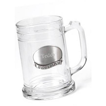 Give a keepsake mug to honor your best buddies - choose from our five medallion options and personalize it with his name. Each glass mug with pewter medallion holds 16 fluid ounces. It's a personalized gift they'll use time and again. Personalized with two lines of up to 15 characters per line.
