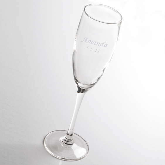 Fill these traditionally styled toasting flutes with 6 ounces of the best bubbly you can find and toast the health and happiness of the happy couple. Or give them as a personalized gift for your attendants. Personalized with two lines of up to 12 characters per line. Size: 8 1/2" x 2".