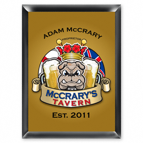 Your groomsmen will be "open for business" when you give them a personalized gift of this English Bulldog Pub Sign. Each design is printed directly onto the wood base for lasting quality. Measures 9" x 12". Personalized with first name, last name and year established.