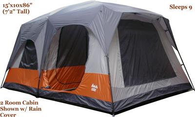 DELUXE 9 Person 2 Room Tent Cabin 15'x10'x86"/7'2" Tall