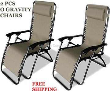 2 X ZERO GRAVITY RECLINER LOUNGE PATIO POOL BEACH CHAIR
