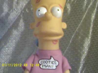 This an original BArt Simpson doll he has " cooties man! " on his shirt. He also has kisses all over his face very cool, He was made in 1990 and created by Matt Groening this a great piece to someones Simpson collection. He stands about 12" tall. I bought this doll when I was 10 with my allowance . I have had him ever since he is in really good condition.
