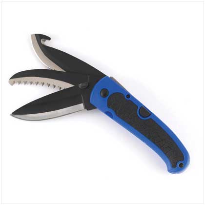 Campers, collectors and do-it-yourselfers are sure to appreciate this triple blade tool! Heavy duty pocketknife tackles any tough task with its straight, serrated and saw-tooth blades. Weight 0.3 lb. Stainless steel blade with plastic handle. 4?" x 1«" x 1" thick; 8" long when open.