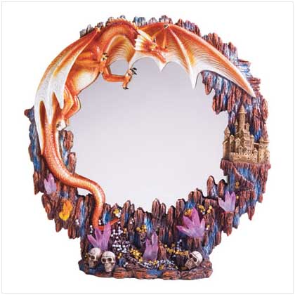 A magical mirror that comes alive with light whenever young knights step forth to view their reflection. Sensor activated. Polyresin. Two AA batteries not included. 12" x 4«" x 12" high.