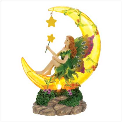 Create your own fairy tale with this whimsical storybook light, with its glowing crescent moon and dreamy young fairy maiden. A uniquely artistic night light! Resin. UL Recognized 7" x 3¬" x 9¬" high.