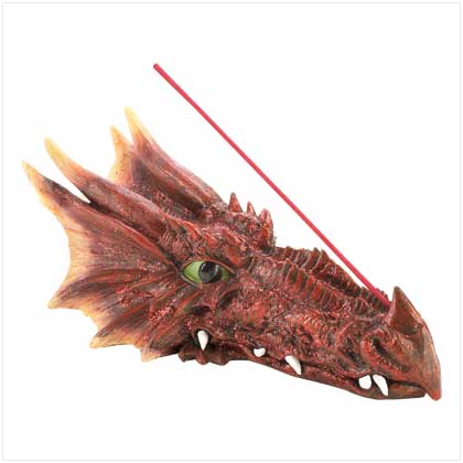 Scented incense smoke creates a mesmerizing display as it drifts above a stunningly lifelike dragon?s head. A magnificent holder for your favorite fragrance sticks! Weight 0.8 lb. Polyresin. Incense sticks not included. 9«" x 4" x 3?" high.