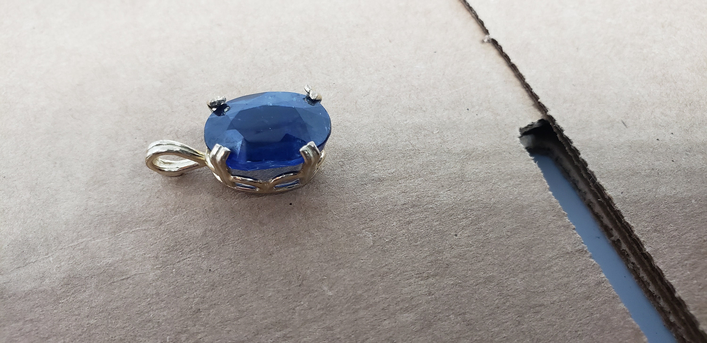 Beautiful 18x13 mm 14.50+ carat oval cut kyanite (from Nepal) Regalle pendant in 14K gold..case