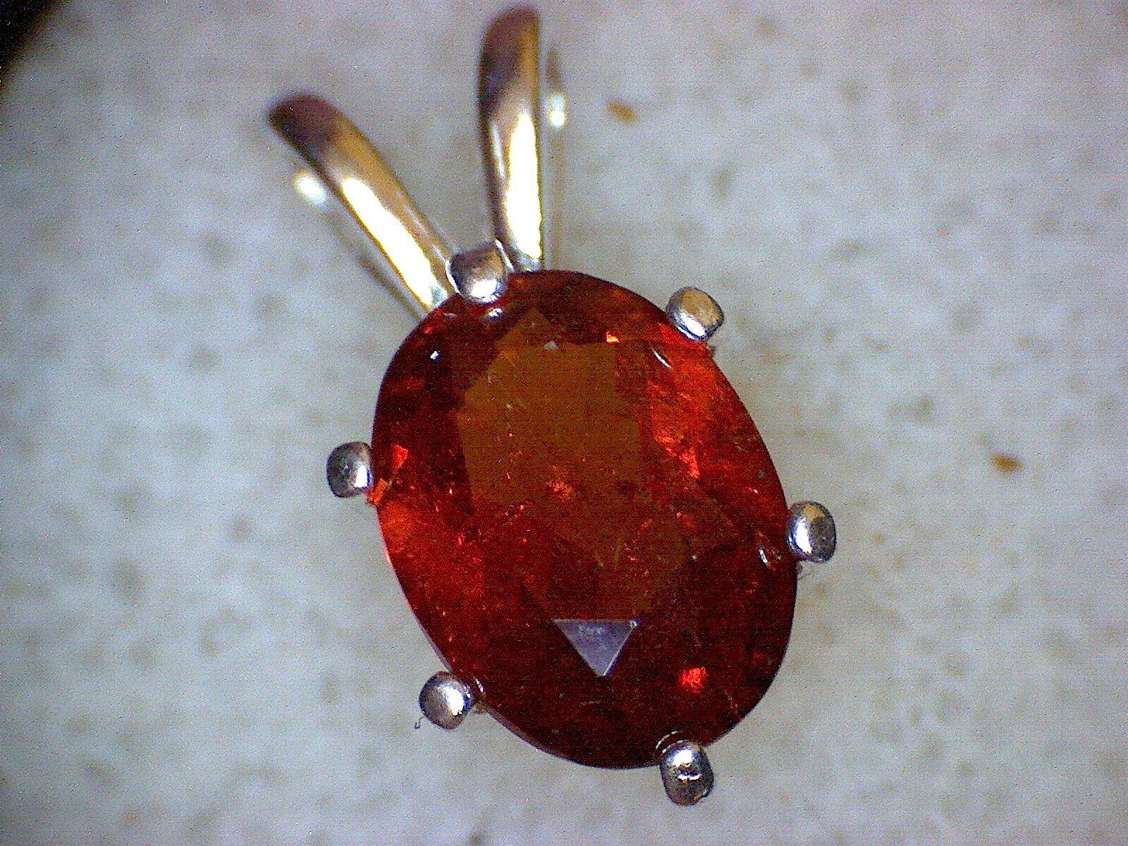 Neat 8x6 mm 1.70+ carat oval cut African spessartite garnet in sterling silver..A5
