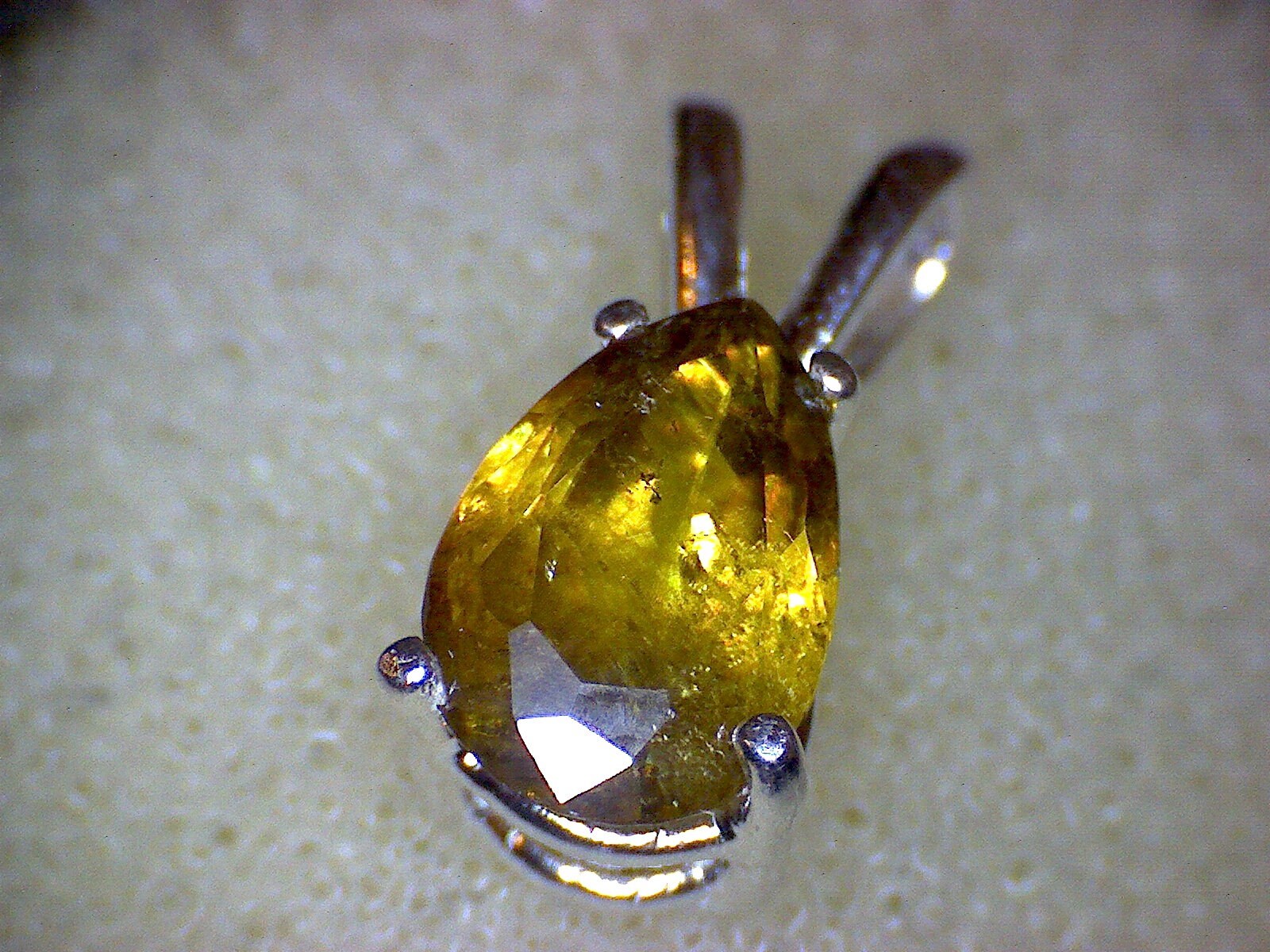 Beautiful 0.95++ carat 7x5 mm pear cut sphene pendant in silver...A1