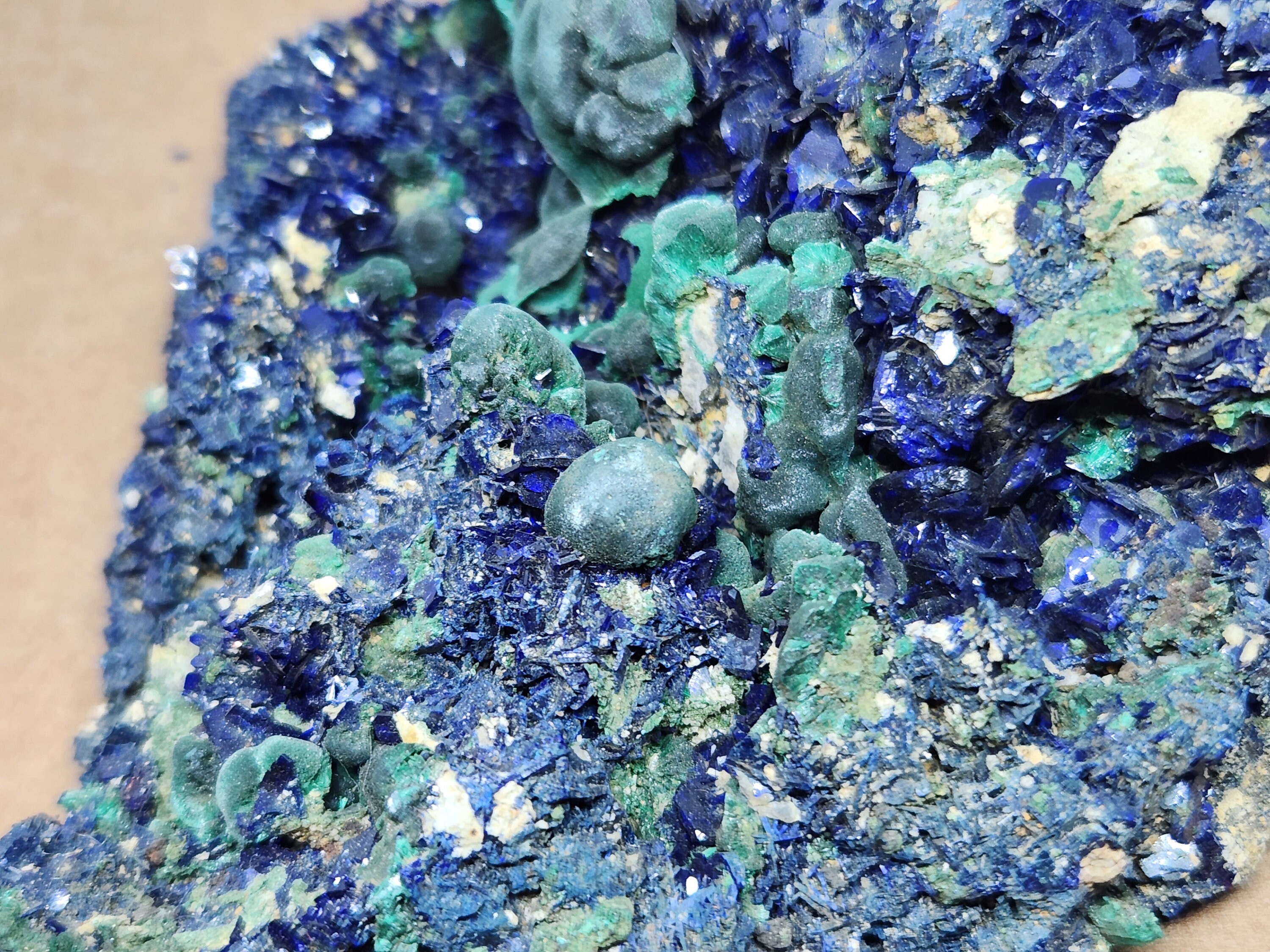 Beautiful 5+ inch azurite with malachite from the relatively new find in Laos..