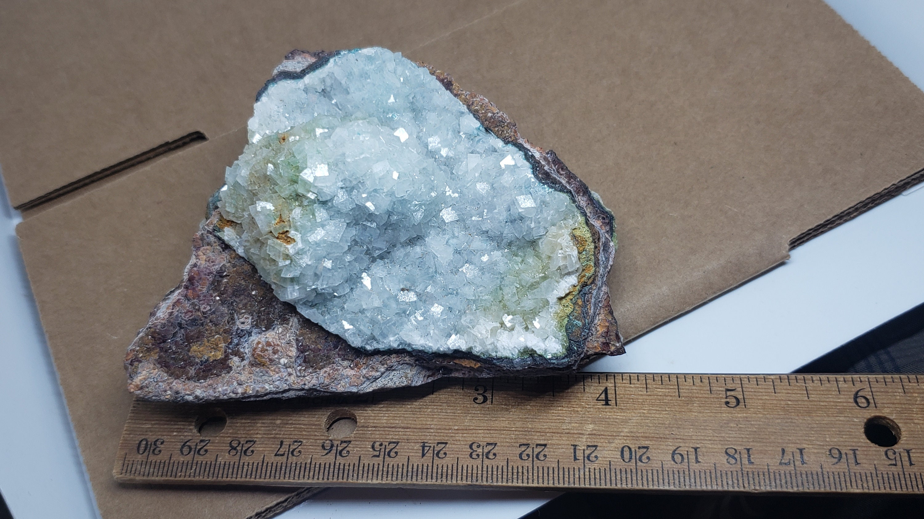 Beautiful 3 inch++ calcite on Rosasite specimen from Ojuela mine, Mexico...calcite on both sides displays nicely..
