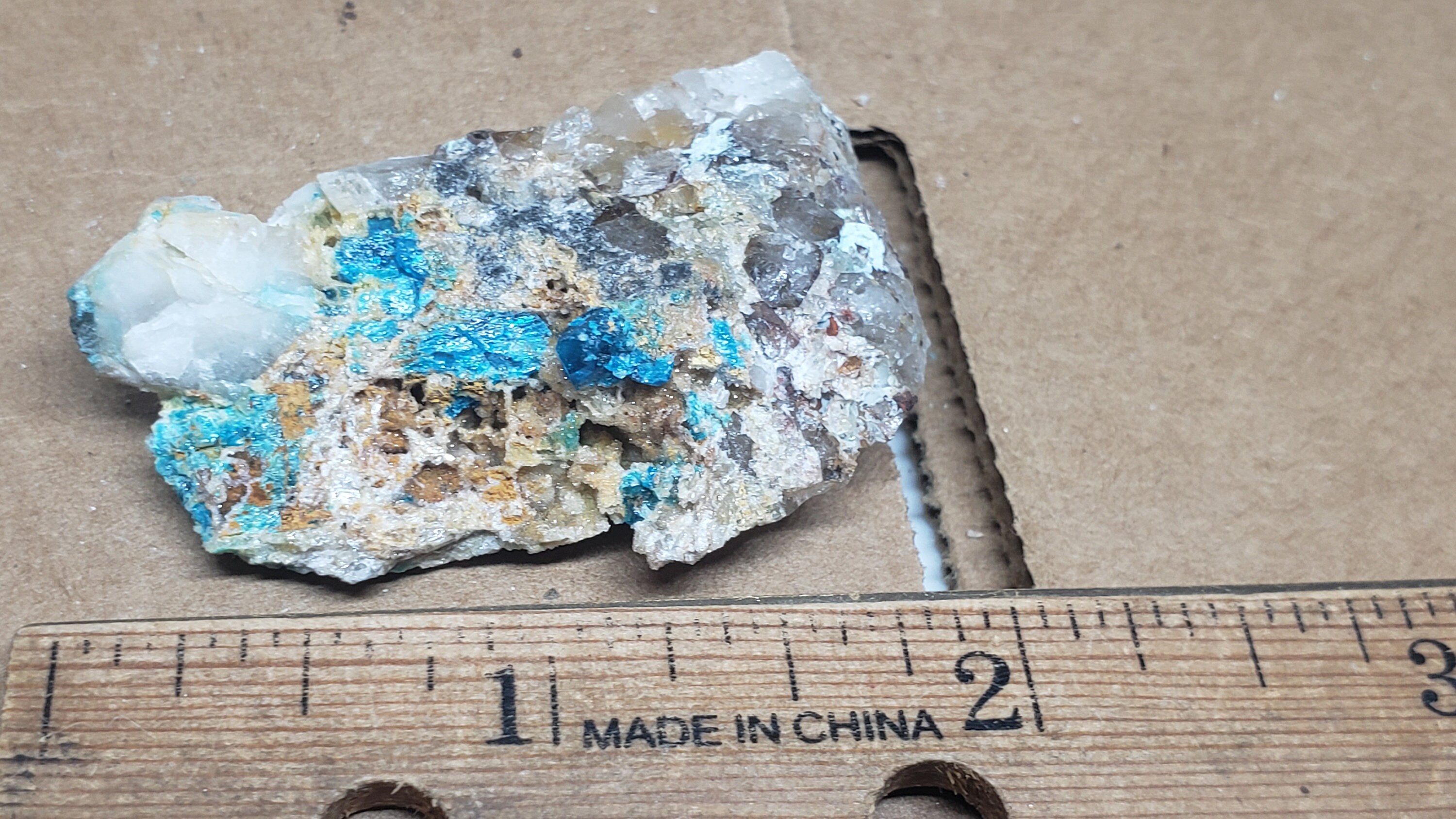 Beautiful 1.5 inch greenish caledonite specimen from Reward mine ,California...crystal just over 3mm