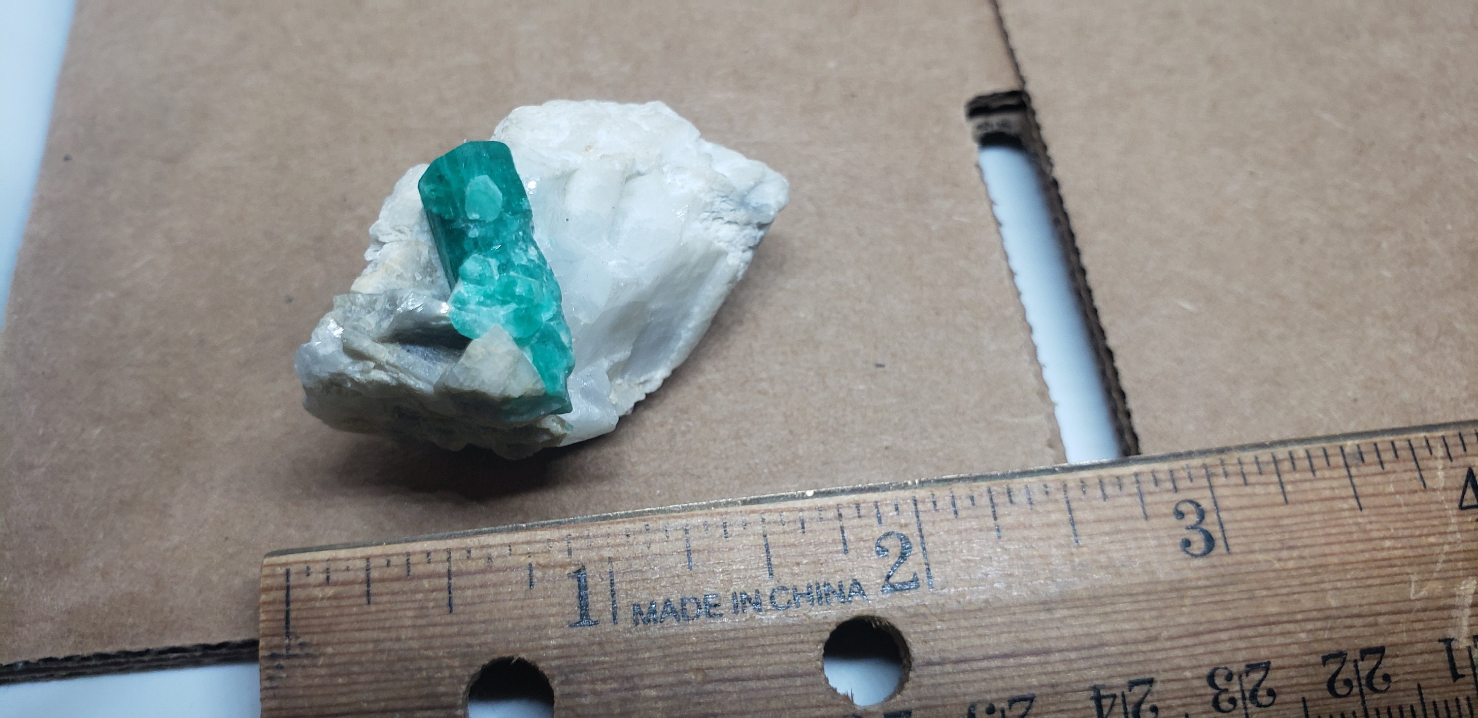 Beautiful gemmy 1.5 inch specimen with a 3/4 inch terminated Colombian emerald crystal in matrix...very rare