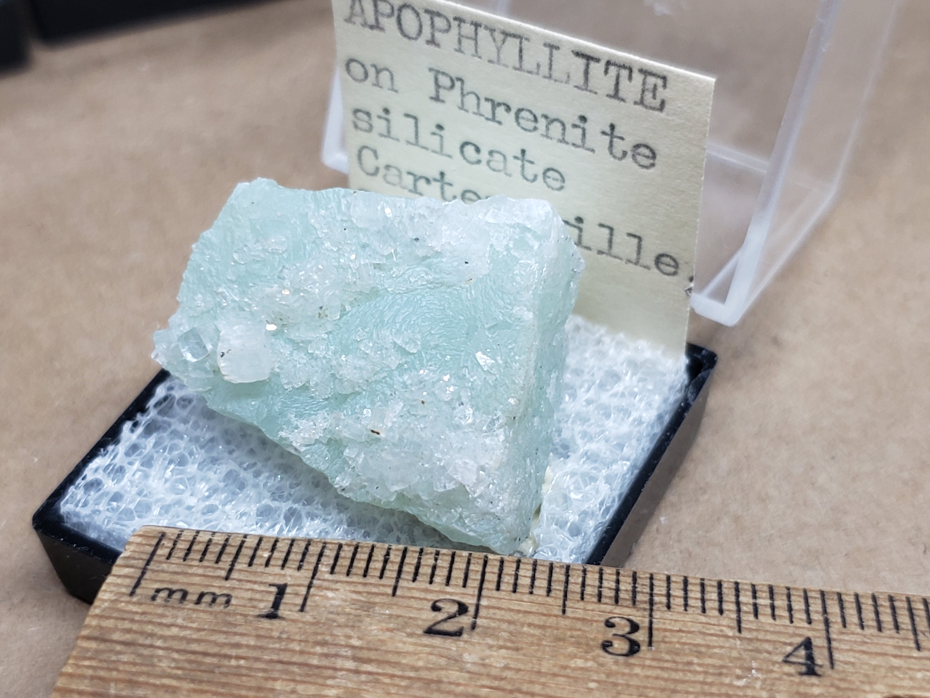 Beautiful 2cm Apophyllite on Prehnite from Cartersville, PA.....HG collection