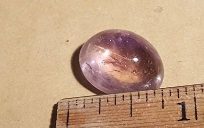 Neat 1/2+ inch polished ametrine cabochon specimen from Bolivia..